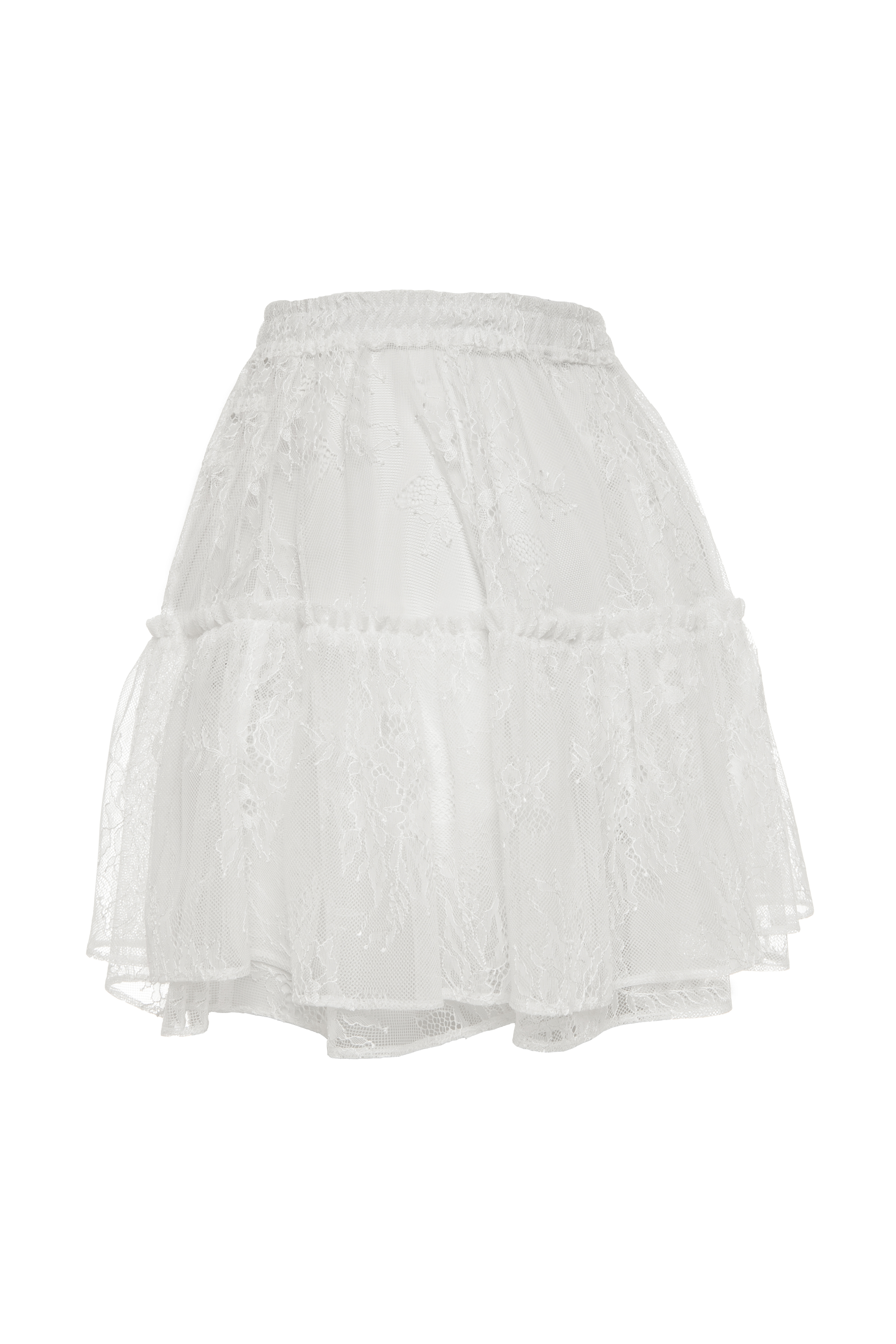 «Doll skirt» Юбка с воланами из кружева. Воздушная юбка с деликатным кружевным характером добавляет образу лёгкость и объём. Многоярусный крой с мягкой сборкой и эластичным поясом комфортно садится по талии и формирует аккуратный силуэт. Лёгкая полупрозрачная ткань из держит форму и создаёт эффект мягкого объёма. Особое внимание уделено деталям: фактурное кружево, аккуратная обработка швов и объёмные воланы по ярусам. Юбка легко сочетается с лаконичными топами, рубашками и трикотажем.