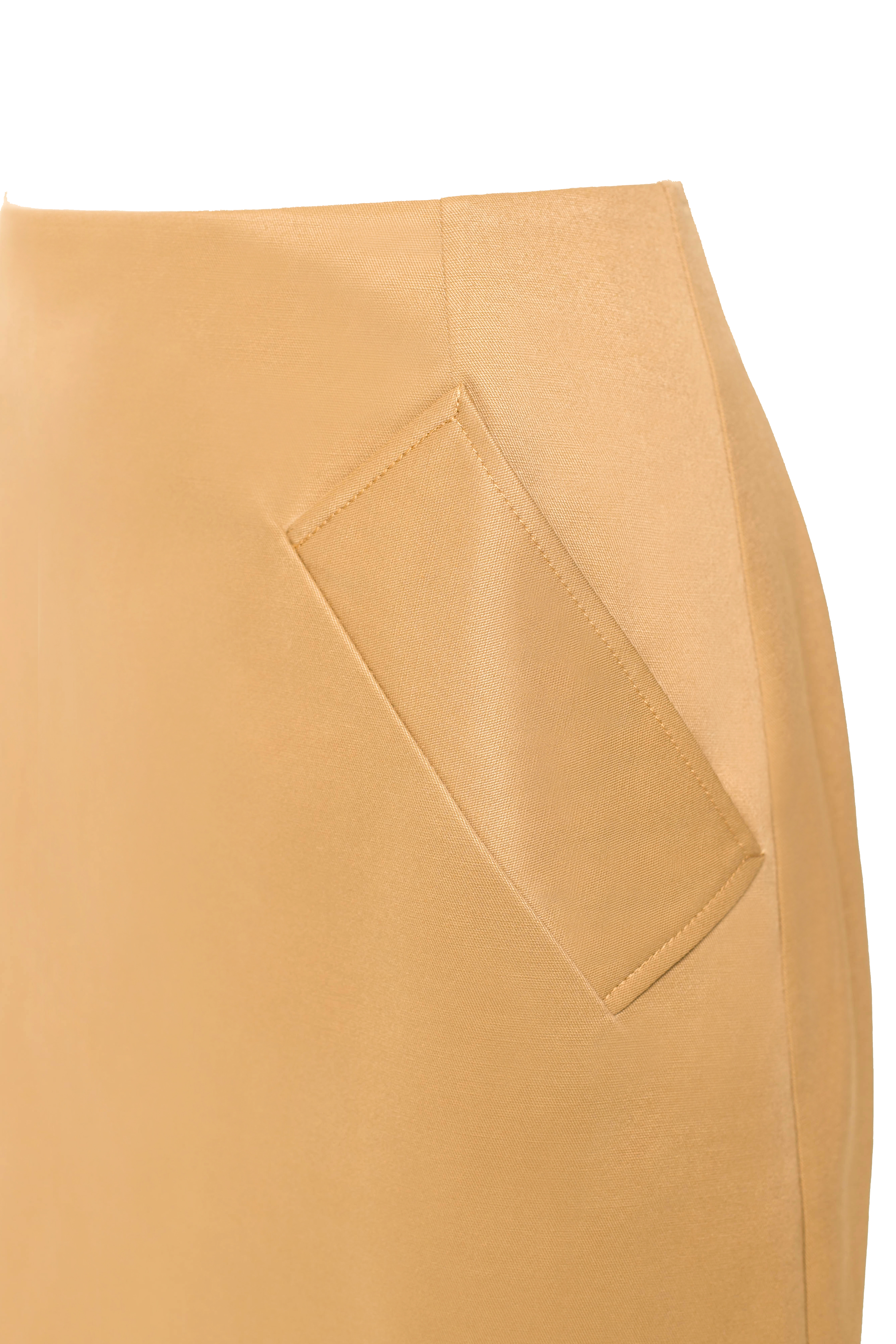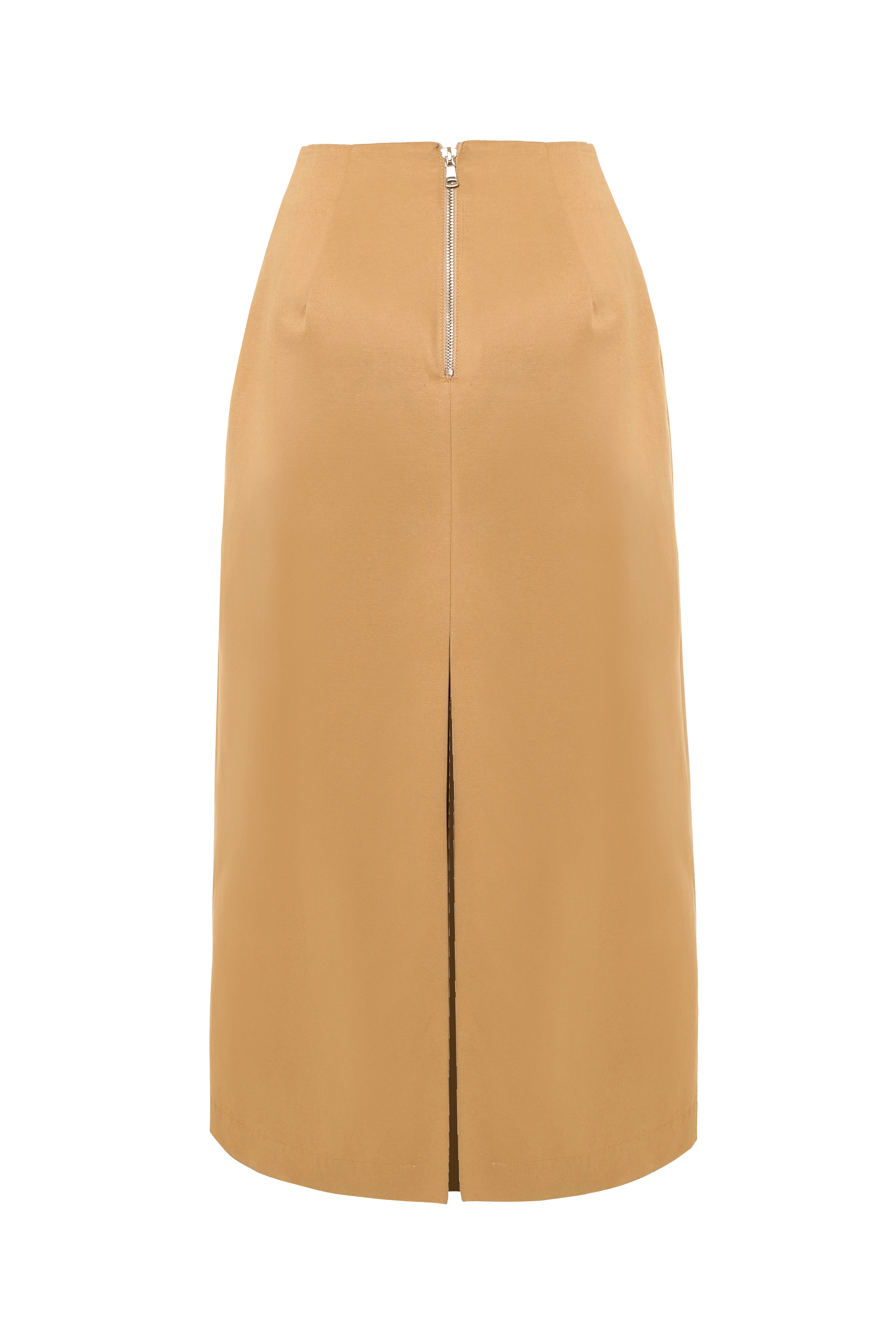 Форма: Юбка миди с трапециевидным силуэтом подчеркивает линию бедер и создает эффектный контур. Разрез сзади добавляет нотку сексуальности и обеспечивает удобство при ходьбе.