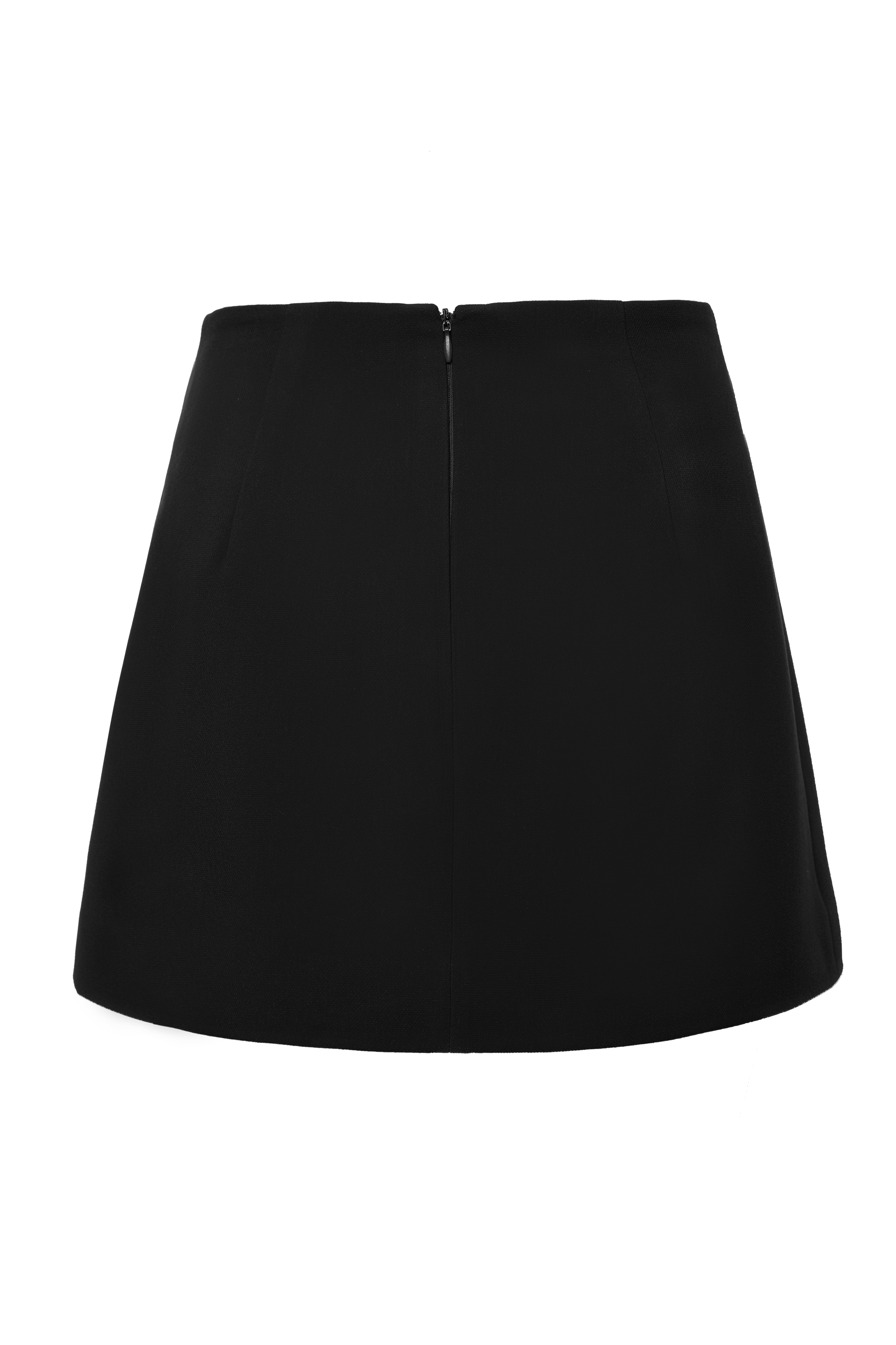Классическая чёрная мини-юбка из плотной ткани на основе вискозы. Чёткий силуэт подчёркивает фигуру, лаконичный дизайн делает модель универсальной для повседневных и вечерних образов. Идеальный базовый элемент гардероба, легко сочетается с блузами, жакетами и топами.