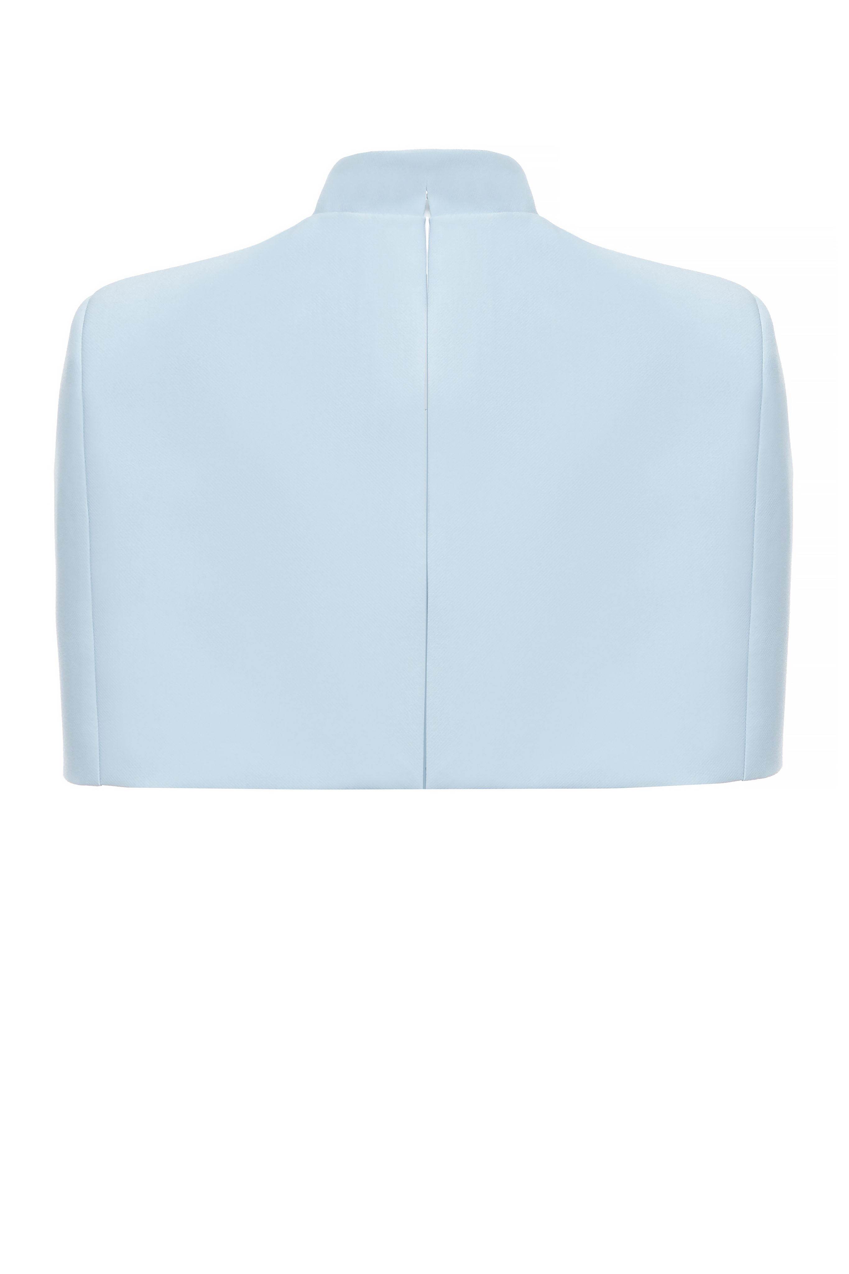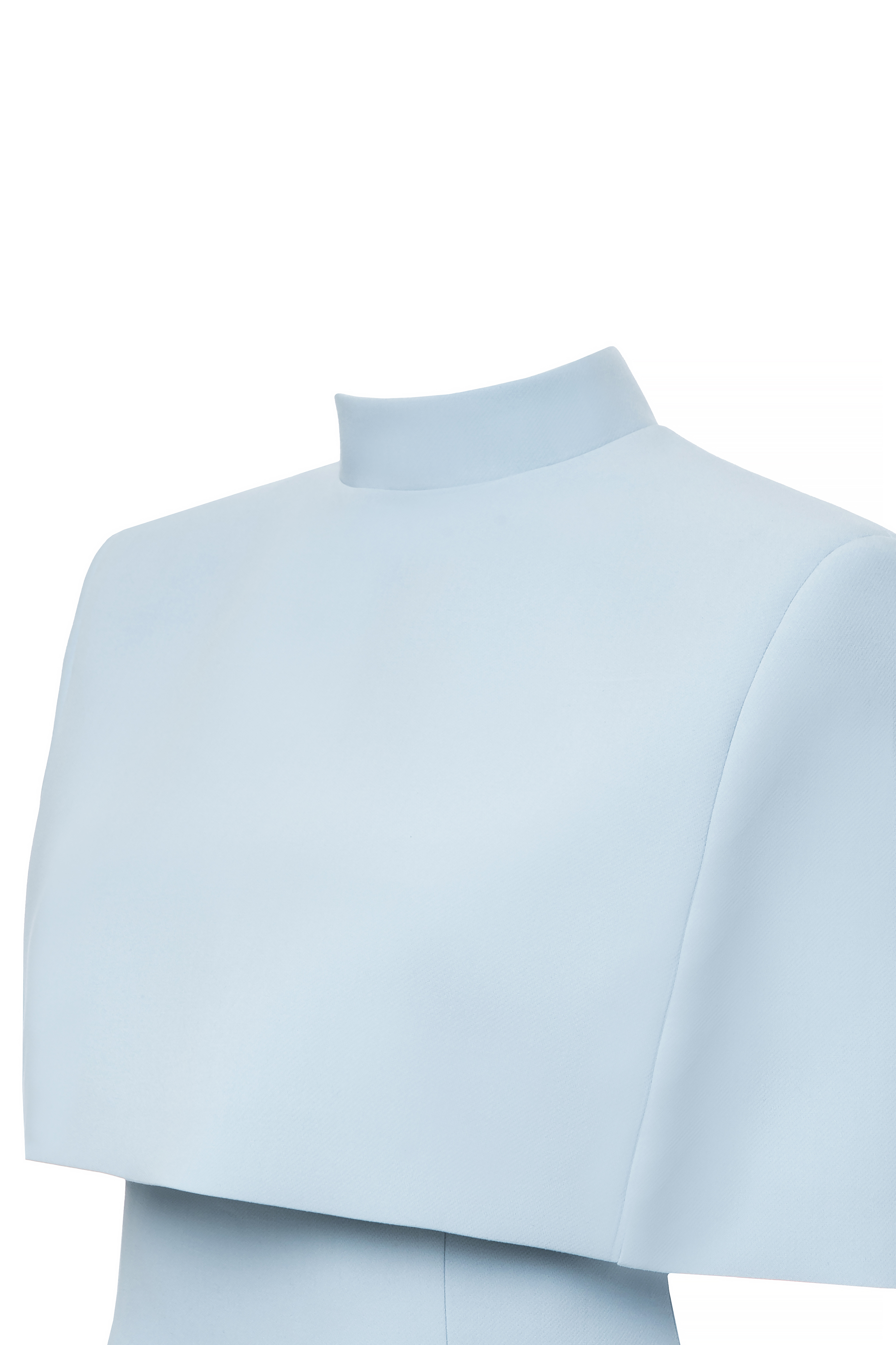Лаконичный и выразительный кейп в духе современной классики — акцентная вещь, создающая собранный и элегантный образ. Прямой крой с четкой линией плеч мягко ложится по силуэту, не утяжеляя посадку. Гладкий, плотный материал с деликатной матовой фактурой приятен к телу и хорошо держит форму. Минималистичный дизайн с аккуратным воротником-стойкой и чистой линией низа подчеркивает архитектурность модели. Кейп легко сочетается с базовым гардеробом и особенно гармонично дополняется платьем из коллекции, создавая завершенный образ.